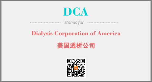 上述内容是“Dialysis Corporation of America”作为“DCA”的缩写,解释为“美国透析公司”时的信息,以及英文缩略词DCA所代表的英文单词,其对应的中文拼音、详细解释以及在英文中的流行度和相关分类、应用领域及应用示例等。