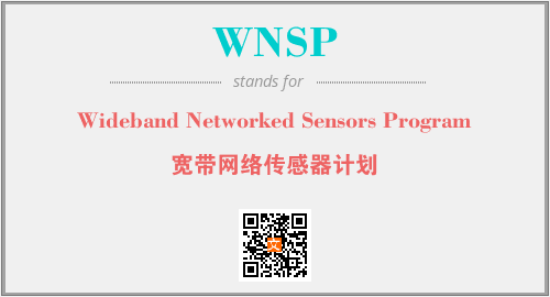 上述内容是“Wideband Networked Sensors Program”作为“WNSP”的缩写,解释为“宽带网络传感器计划”时的信息,以及英文缩略词WNSP所代表的英文单词,其对应的中文拼音、详细解释以及在英文中的流行度和相关分类、应用领域及应用示例等。
