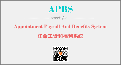 上述内容是“Appointment Payroll And Benefits System”作为“APBS”的缩写,解释为“任命工资和福利系统”时的信息,以及英文缩略词APBS所代表的英文单词,其对应的中文拼音、详细解释以及在英文中的流行度和相关分类、应用领域及应用示例等。