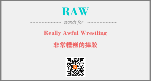上述内容是“Really Awful Wrestling”作为“RAW”的缩写,解释为“非常糟糕的摔跤”时的信息,以及英文缩略词RAW所代表的英文单词,其对应的中文拼音、详细解释以及在英文中的流行度和相关分类、应用领域及应用示例等。