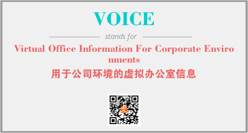 上述内容是“Virtual Office Information For Corporate Environments”作为“VOICE”的缩写,解释为“用于公司环境的虚拟办公室信息”时的信息,以及英文缩略词VOICE所代表的英文单词,其对应的中文拼音、详细解释以及在英文中的流行度和相关分类、应用领域及应用示例等。