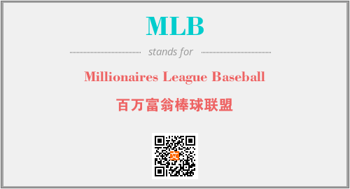 英文缩略词“MLB”经常作为“Millionaires League Baseball”的英文缩写来使用,中文表示:“百万富翁棒球联盟”。本文将详细介绍英文缩写词MLB所代表英文单词,其对应的中文拼音、详细解释以及在英语中的流行度。此外,还有关于缩略词MLB的分类、应用领域及相关应用示例等。