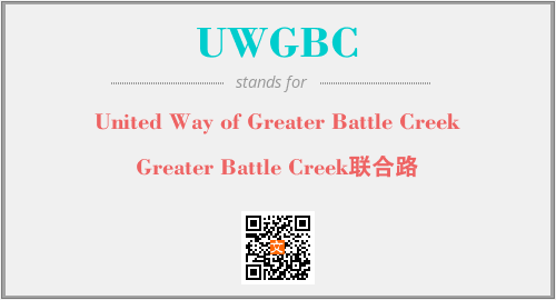 英文缩略词“UWGBC”经常作为“United Way of Greater Battle Creek”的英文缩写来使用,中文表示:“Greater Battle Creek联合路”。本文将详细介绍英文缩写词UWGBC所代表英文单词,其对应的中文拼音、详细解释以及在英语中的流行度。此外,还有关于缩略词UWGBC的分类、应用领域及相关应用示例等。