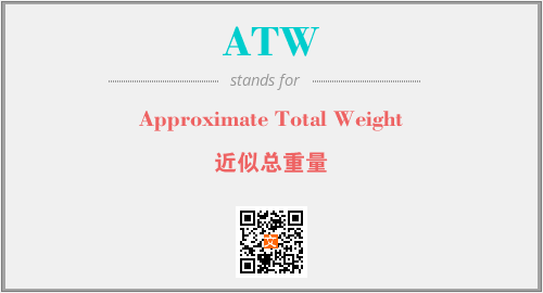 上述内容是“Approximate Total Weight”作为“ATW”的缩写,解释为“近似总重量”时的信息,以及英文缩略词ATW所代表的英文单词,其对应的中文拼音、详细解释以及在英文中的流行度和相关分类、应用领域及应用示例等。