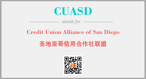 上述内容是“Credit Union Alliance of San Diego”作为“CUASD”的缩写,解释为“圣地亚哥信用合作社联盟”时的信息,以及英文缩略词CUASD所代表的英文单词,其对应的中文拼音、详细解释以及在英文中的流行度和相关分类、应用领域及应用示例等。