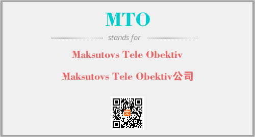 上述内容是“Maksutovs Tele Obektiv”作为“MTO”的缩写,解释为“Maksutovs Tele Obektiv公司”时的信息,以及英文缩略词MTO所代表的英文单词,其对应的中文拼音、详细解释以及在英文中的流行度和相关分类、应用领域及应用示例等。