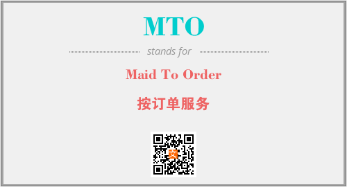 英文缩略词“MTO”经常作为“Maid To Order”的英文缩写来使用,中文表示:“按订单服务”。本文将详细介绍英文缩写词MTO所代表英文单词,其对应的中文拼音、详细解释以及在英语中的流行度。此外,还有关于缩略词MTO的分类、应用领域及相关应用示例等。