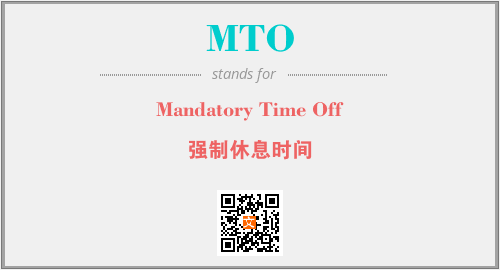 以上为Mandatory Time Off英文缩略词MTO的中文解释,以及该英文缩写在英语的流行度、分类和应用领域方面的信息。