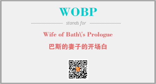 以上为Wife of Bath\'s Prologue英文缩略词WOBP的中文解释,以及该英文缩写在英语的流行度、分类和应用领域方面的信息。