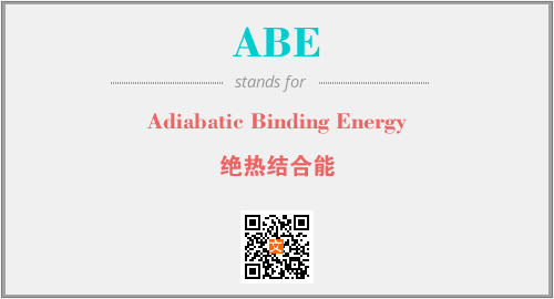 上述内容是“Adiabatic Binding Energy”作为“ABE”的缩写,解释为“绝热结合能”时的信息,以及英文缩略词ABE所代表的英文单词,其对应的中文拼音、详细解释以及在英文中的流行度和相关分类、应用领域及应用示例等。