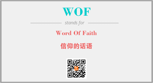 上述内容是“Word Of Faith”作为“WOF”的缩写,解释为“信仰的话语”时的信息,以及英文缩略词WOF所代表的英文单词,其对应的中文拼音、详细解释以及在英文中的流行度和相关分类、应用领域及应用示例等。