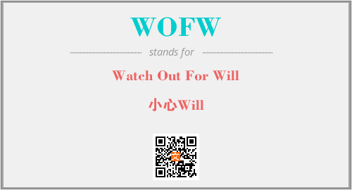 以上为Watch Out For Will英文缩略词WOFW的中文解释,以及该英文缩写在英语的流行度、分类和应用领域方面的信息。
