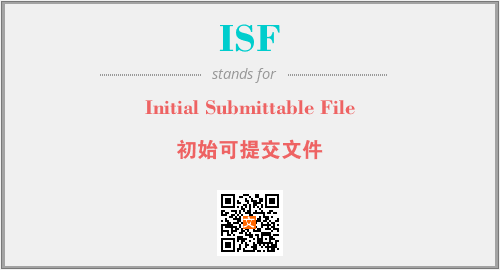英文缩略词“ISF”经常作为“Initial Submittable File”的英文缩写来使用,中文表示:“初始可提交文件”。本文将详细介绍英文缩写词ISF所代表英文单词,其对应的中文拼音、详细解释以及在英语中的流行度。此外,还有关于缩略词ISF的分类、应用领域及相关应用示例等。