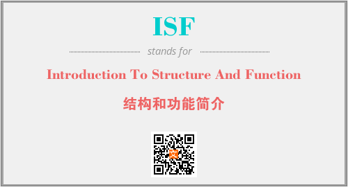 上述内容是“Introduction To Structure And Function”作为“ISF”的缩写,解释为“结构和功能简介”时的信息,以及英文缩略词ISF所代表的英文单词,其对应的中文拼音、详细解释以及在英文中的流行度和相关分类、应用领域及应用示例等。