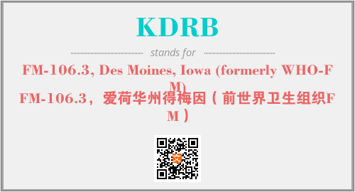 上述内容是“FM-106.3, Des Moines, Iowa (formerly WHO-FM)”作为“KDRB”的缩写,解释为“FM-106.3,爱荷华州得梅因(前世界卫生组织FM)”时的信息,以及英文缩略词KDRB所代表的英文单词,其对应的中文拼音、详细解释以及在英文中的流行度和相关分类、应用领域及应用示例等。