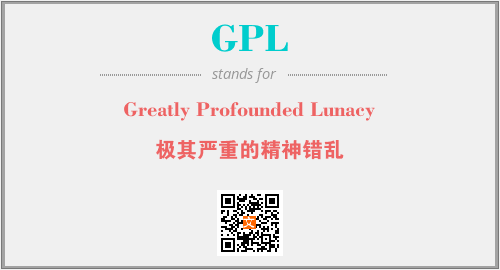以上为Greatly Profounded Lunacy英文缩略词GPL的中文解释,以及该英文缩写在英语的流行度、分类和应用领域方面的信息。