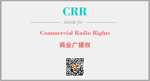 上述内容是“Commercial Radio Rights”作为“CRR”的缩写,解释为“商业广播权”时的信息,以及英文缩略词CRR所代表的英文单词,其对应的中文拼音、详细解释以及在英文中的流行度和相关分类、应用领域及应用示例等。