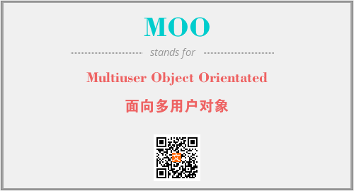 英文缩略词“MOO”经常作为“Multiuser Object Orientated”的英文缩写来使用,中文表示:“面向多用户对象”。本文将详细介绍英文缩写词MOO所代表英文单词,其对应的中文拼音、详细解释以及在英语中的流行度。此外,还有关于缩略词MOO的分类、应用领域及相关应用示例等。