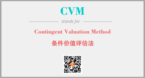 上述内容是“Contingent Valuation Method”作为“CVM”的缩写,解释为“条件价值评估法”时的信息,以及英文缩略词CVM所代表的英文单词,其对应的中文拼音、详细解释以及在英文中的流行度和相关分类、应用领域及应用示例等。