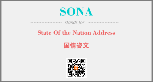 上述内容是“State Of the Nation Address”作为“SONA”的缩写,解释为“国情咨文”时的信息,以及英文缩略词SONA所代表的英文单词,其对应的中文拼音、详细解释以及在英文中的流行度和相关分类、应用领域及应用示例等。