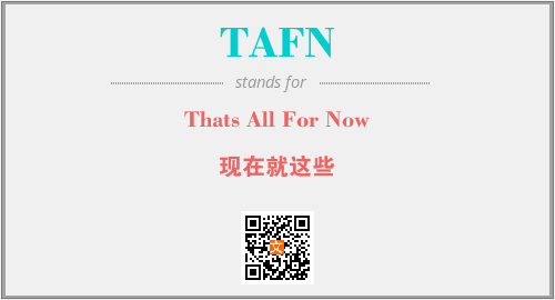 英文缩略词“TAFN”经常作为“Thats All For Now”的英文缩写来使用,中文表示:“现在就这些”。本文将详细介绍英文缩写词TAFN所代表英文单词,其对应的中文拼音、详细解释以及在英语中的流行度。此外,还有关于缩略词TAFN的分类、应用领域及相关应用示例等。