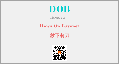 英文缩略词“DOB”经常作为“Down On Bayonet”的英文缩写来使用,中文表示:“放下刺刀”。本文将详细介绍英文缩写词DOB所代表英文单词,其对应的中文拼音、详细解释以及在英语中的流行度。此外,还有关于缩略词DOB的分类、应用领域及相关应用示例等。