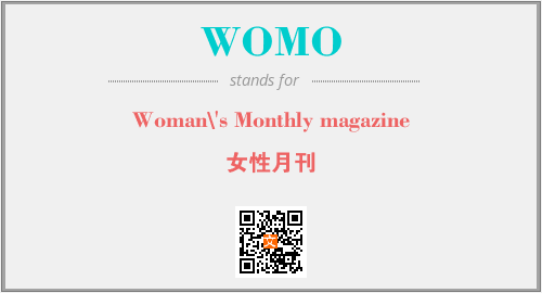 上述内容是“Woman\'s Monthly magazine”作为“WOMO”的缩写,解释为“女性月刊”时的信息,以及英文缩略词WOMO所代表的英文单词,其对应的中文拼音、详细解释以及在英文中的流行度和相关分类、应用领域及应用示例等。