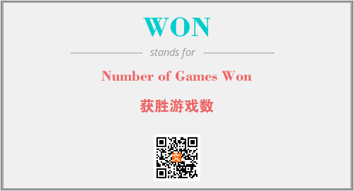 上述内容是“Number of Games Won”作为“WON”的缩写,解释为“获胜游戏数”时的信息,以及英文缩略词WON所代表的英文单词,其对应的中文拼音、详细解释以及在英文中的流行度和相关分类、应用领域及应用示例等。