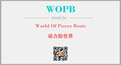 英文缩略词“WOPB”经常作为“World Of Power Boats”的英文缩写来使用,中文表示:“动力船世界”。本文将详细介绍英文缩写词WOPB所代表英文单词,其对应的中文拼音、详细解释以及在英语中的流行度。此外,还有关于缩略词WOPB的分类、应用领域及相关应用示例等。