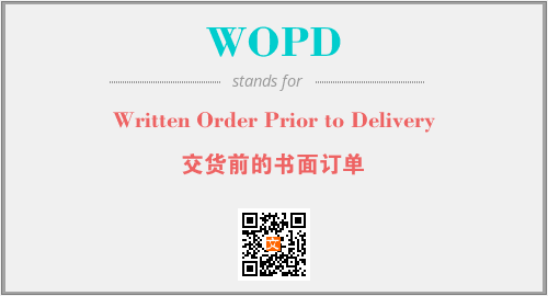 以上为Written Order Prior to Delivery英文缩略词WOPD的中文解释,以及该英文缩写在英语的流行度、分类和应用领域方面的信息。