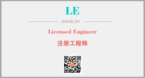 上述内容是“Licensed Engineer”作为“LE”的缩写,解释为“注册工程师”时的信息,以及英文缩略词LE所代表的英文单词,其对应的中文拼音、详细解释以及在英文中的流行度和相关分类、应用领域及应用示例等。