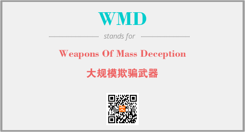 以上为Weapons Of Mass Deception英文缩略词WMD的中文解释,以及该英文缩写在英语的流行度、分类和应用领域方面的信息。