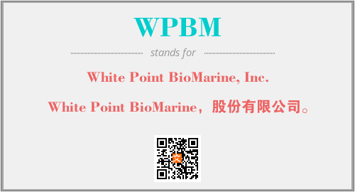 上述内容是“White Point BioMarine, Inc.”作为“WPBM”的缩写,解释为“White Point BioMarine,股份有限公司。”时的信息,以及英文缩略词WPBM所代表的英文单词,其对应的中文拼音、详细解释以及在英文中的流行度和相关分类、应用领域及应用示例等。