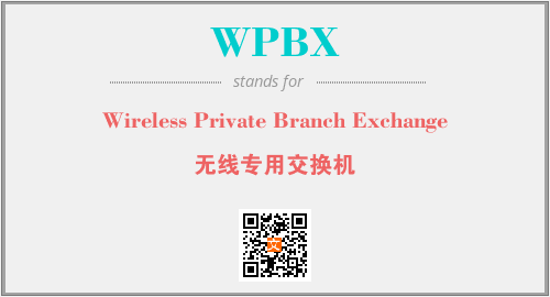 英文缩略词“WPBX”经常作为“Wireless Private Branch Exchange”的英文缩写来使用,中文表示:“无线专用交换机”。本文将详细介绍英文缩写词WPBX所代表英文单词,其对应的中文拼音、详细解释以及在英语中的流行度。此外,还有关于缩略词WPBX的分类、应用领域及相关应用示例等。