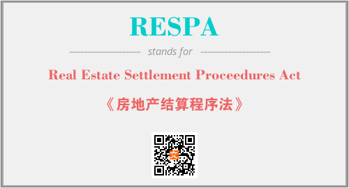 英文缩略词“RESPA”经常作为“Real Estate Settlement Proceedures Act”的英文缩写来使用,中文表示:“《房地产结算程序法》”。本文将详细介绍英文缩写词RESPA所代表英文单词,其对应的中文拼音、详细解释以及在英语中的流行度。此外,还有关于缩略词RESPA的分类、应用领域及相关应用示例等。