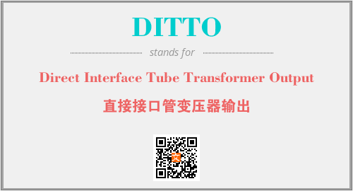 英文缩略词“DITTO”经常作为“Direct Interface Tube Transformer Output”的英文缩写来使用,中文表示:“直接接口管变压器输出”。本文将详细介绍英文缩写词DITTO所代表英文单词,其对应的中文拼音、详细解释以及在英语中的流行度。此外,还有关于缩略词DITTO的分类、应用领域及相关应用示例等。
