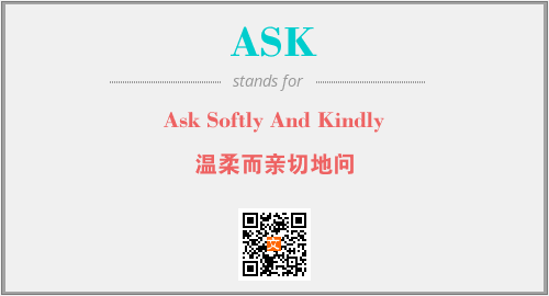 英文缩略词“ASK”经常作为“Ask Softly And Kindly”的英文缩写来使用,中文表示:“温柔而亲切地问”。本文将详细介绍英文缩写词ASK所代表英文单词,其对应的中文拼音、详细解释以及在英语中的流行度。此外,还有关于缩略词ASK的分类、应用领域及相关应用示例等。