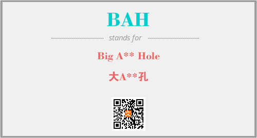 英文缩略词“BAH”经常作为“Big A** Hole”的英文缩写来使用,中文表示:“大A**孔”。本文将详细介绍英文缩写词BAH所代表英文单词,其对应的中文拼音、详细解释以及在英语中的流行度。此外,还有关于缩略词BAH的分类、应用领域及相关应用示例等。