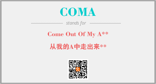 以上为Come Out Of My A**英文缩略词COMA的中文解释,以及该英文缩写在英语的流行度、分类和应用领域方面的信息。