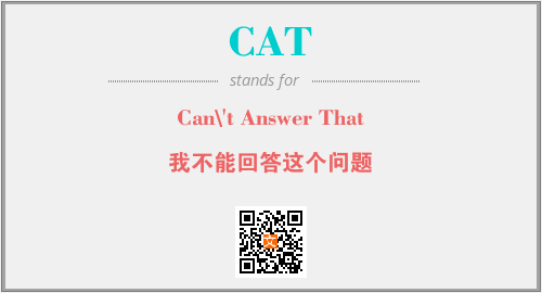 以上为Can\'t Answer That英文缩略词CAT的中文解释,以及该英文缩写在英语的流行度、分类和应用领域方面的信息。