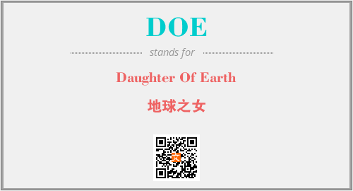 英文缩略词“DOE”经常作为“Daughter Of Earth”的英文缩写来使用,中文表示:“地球之女”。本文将详细介绍英文缩写词DOE所代表英文单词,其对应的中文拼音、详细解释以及在英语中的流行度。此外,还有关于缩略词DOE的分类、应用领域及相关应用示例等。