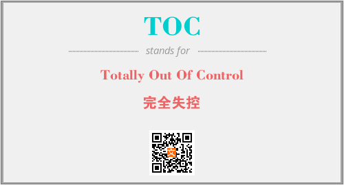 上述内容是“Totally Out Of Control”作为“TOC”的缩写,解释为“完全失控”时的信息,以及英文缩略词TOC所代表的英文单词,其对应的中文拼音、详细解释以及在英文中的流行度和相关分类、应用领域及应用示例等。