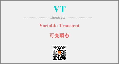 上述内容是“Variable Transient”作为“VT”的缩写,解释为“可变瞬态”时的信息,以及英文缩略词VT所代表的英文单词,其对应的中文拼音、详细解释以及在英文中的流行度和相关分类、应用领域及应用示例等。
