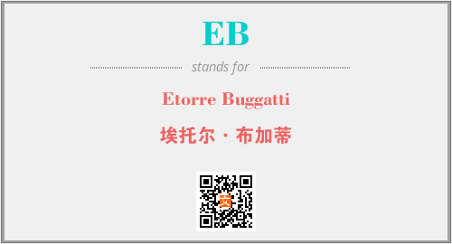 上述内容是“Etorre Buggatti”作为“EB”的缩写,解释为“埃托尔·布加蒂”时的信息,以及英文缩略词EB所代表的英文单词,其对应的中文拼音、详细解释以及在英文中的流行度和相关分类、应用领域及应用示例等。