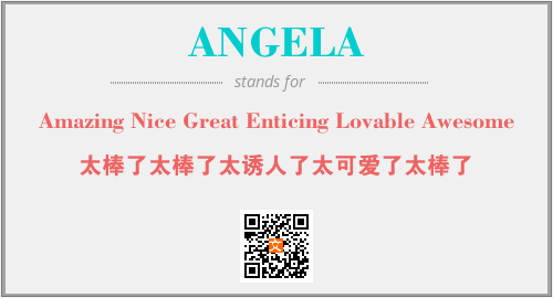 上述内容是“Amazing Nice Great Enticing Lovable Awesome”作为“ANGELA”的缩写,解释为“太棒了太棒了太诱人了太可爱了太棒了”时的信息,以及英文缩略词ANGELA所代表的英文单词,其对应的中文拼音、详细解释以及在英文中的流行度和相关分类、应用领域及应用示例等。