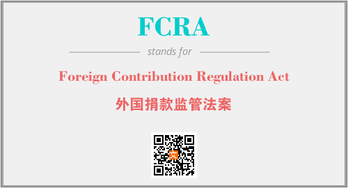 上述内容是“Foreign Contribution Regulation Act”作为“FCRA”的缩写,解释为“外国捐款监管法案”时的信息,以及英文缩略词FCRA所代表的英文单词,其对应的中文拼音、详细解释以及在英文中的流行度和相关分类、应用领域及应用示例等。