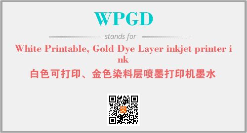 上述内容是“White Printable, Gold Dye Layer inkjet printer ink”作为“WPGD”的缩写,解释为“白色可打印、金色染料层喷墨打印机墨水”时的信息,以及英文缩略词WPGD所代表的英文单词,其对应的中文拼音、详细解释以及在英文中的流行度和相关分类、应用领域及应用示例等。