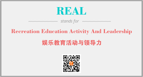 英文缩略词“REAL”经常作为“Recreation Education Activity And Leadership”的英文缩写来使用,中文表示:“娱乐教育活动与领导力”。本文将详细介绍英文缩写词REAL所代表英文单词,其对应的中文拼音、详细解释以及在英语中的流行度。此外,还有关于缩略词REAL的分类、应用领域及相关应用示例等。