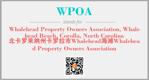 英文缩略词“WPOA”经常作为“Whalehead Property Owners Association, Whalehead Beach, Corolla, North Carolina”的英文缩写来使用,中文表示:“北卡罗来纳州卡罗拉市Whalehead海滩Whalehead Property Owners Association”。本文将详细介绍英文缩写词WPOA所代表英文单词,其对应的中文拼音、详细解释以及在英语中的流行度。此外,还有关于缩略词WPOA的分类、应用领域及相关应用示例等。
