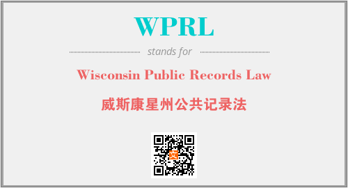 上述内容是“Wisconsin Public Records Law”作为“WPRL”的缩写,解释为“威斯康星州公共记录法”时的信息,以及英文缩略词WPRL所代表的英文单词,其对应的中文拼音、详细解释以及在英文中的流行度和相关分类、应用领域及应用示例等。